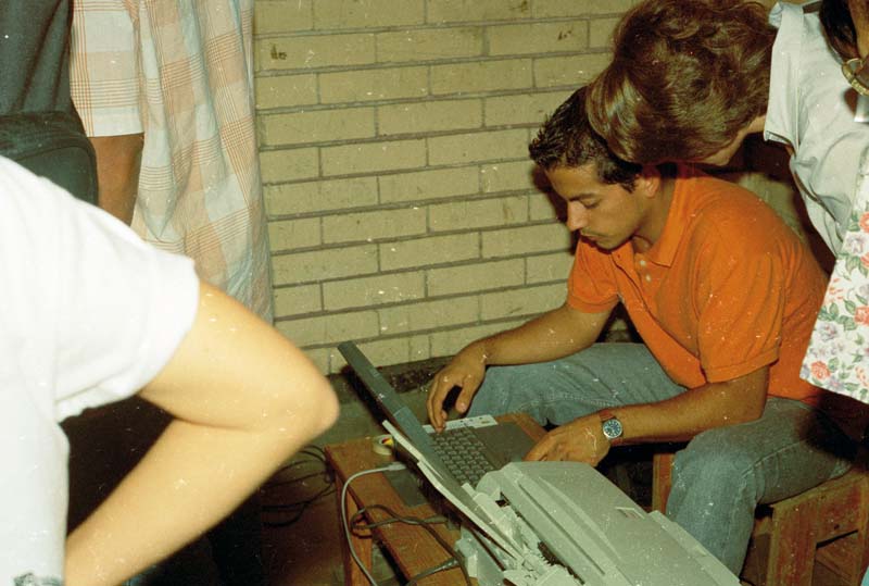 A partir de un archivo de citas referentes a la acción plástica y al teatro, junto a otras citas autoría del artista, usando como recursos un computador personal y una impresora, el artista desarrolla una acción donde escribe, escoge, imprime y fija textos en la pared.